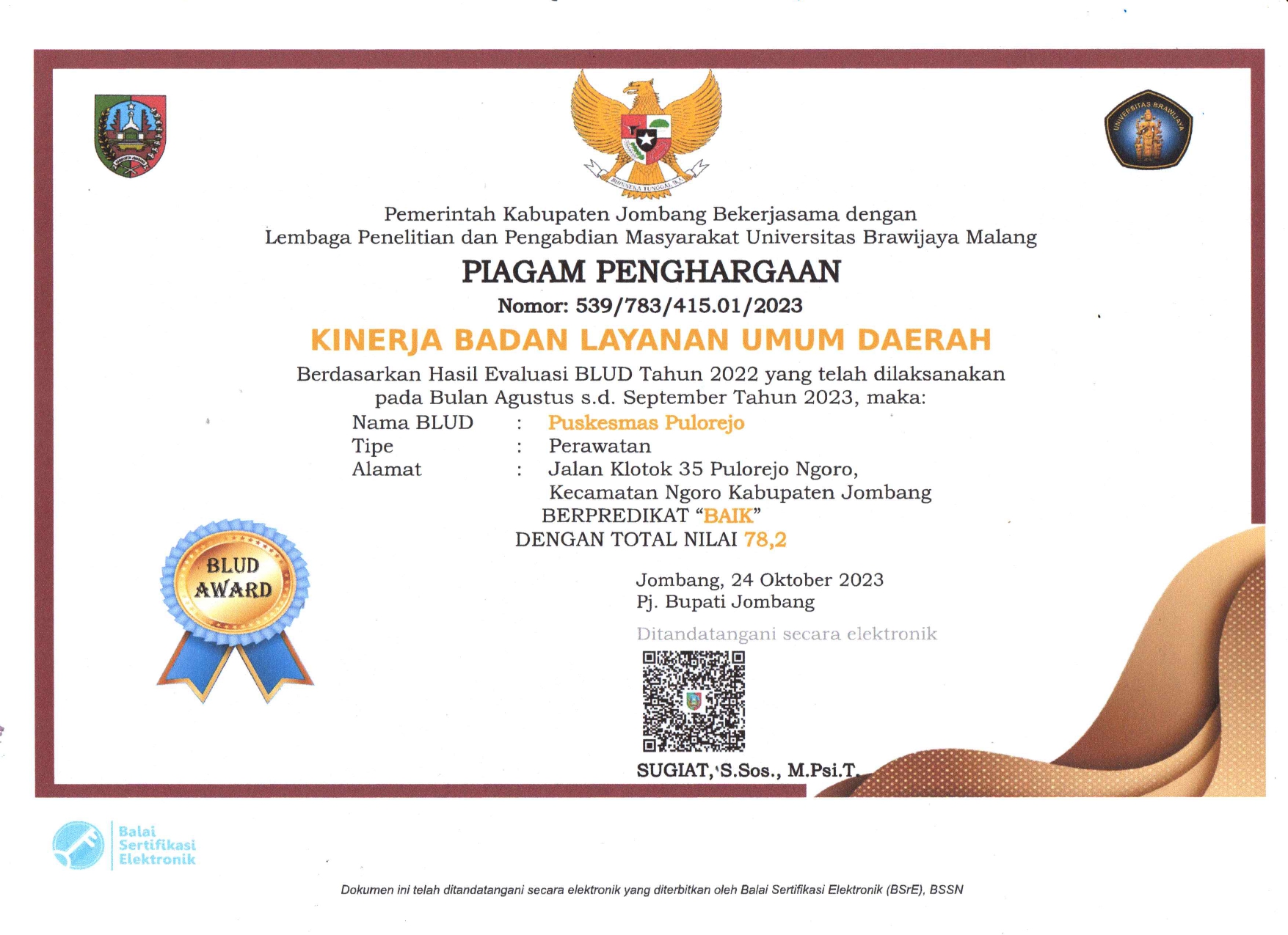 Kinerja Badan Layanan Umum Daerah berdasarkan hasil evaluasi BLUD tahun 2022 yang telah dilaksanakan pada bulan Agustus s.d. September tahun 2023